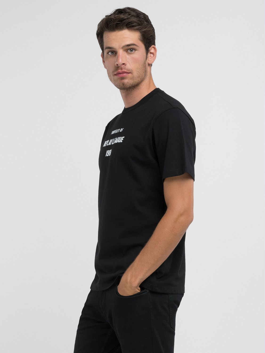 Crew-neck T-shirt in piece-dyed pure cotton jersey, guaranteeing softness and durability. This men’s short-sleeved regular-fit T-shirt features a custom lettering print on the chest.