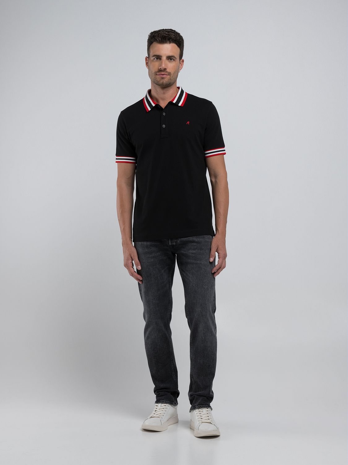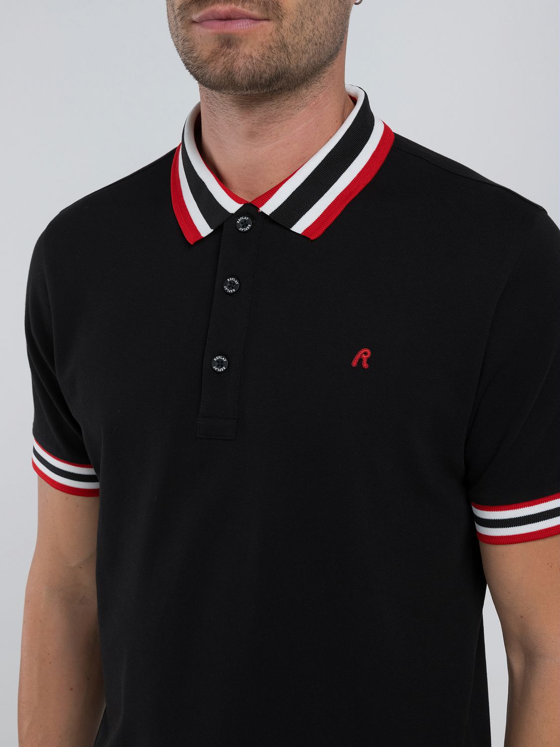 Black Polo Shirt With Red and White Detail