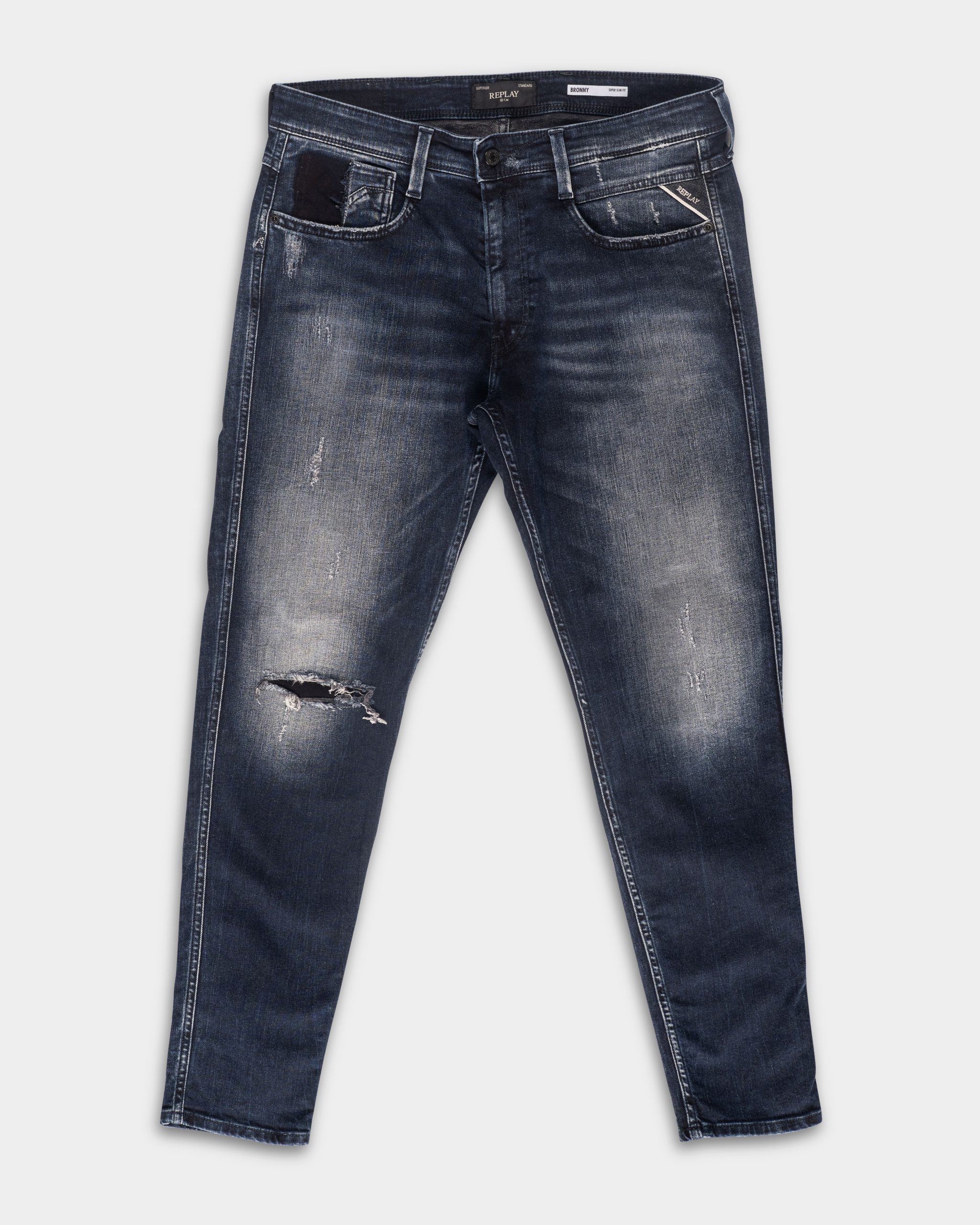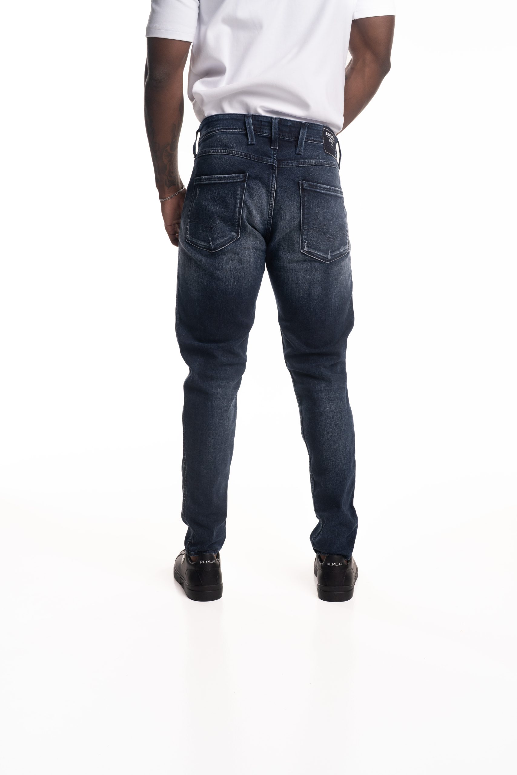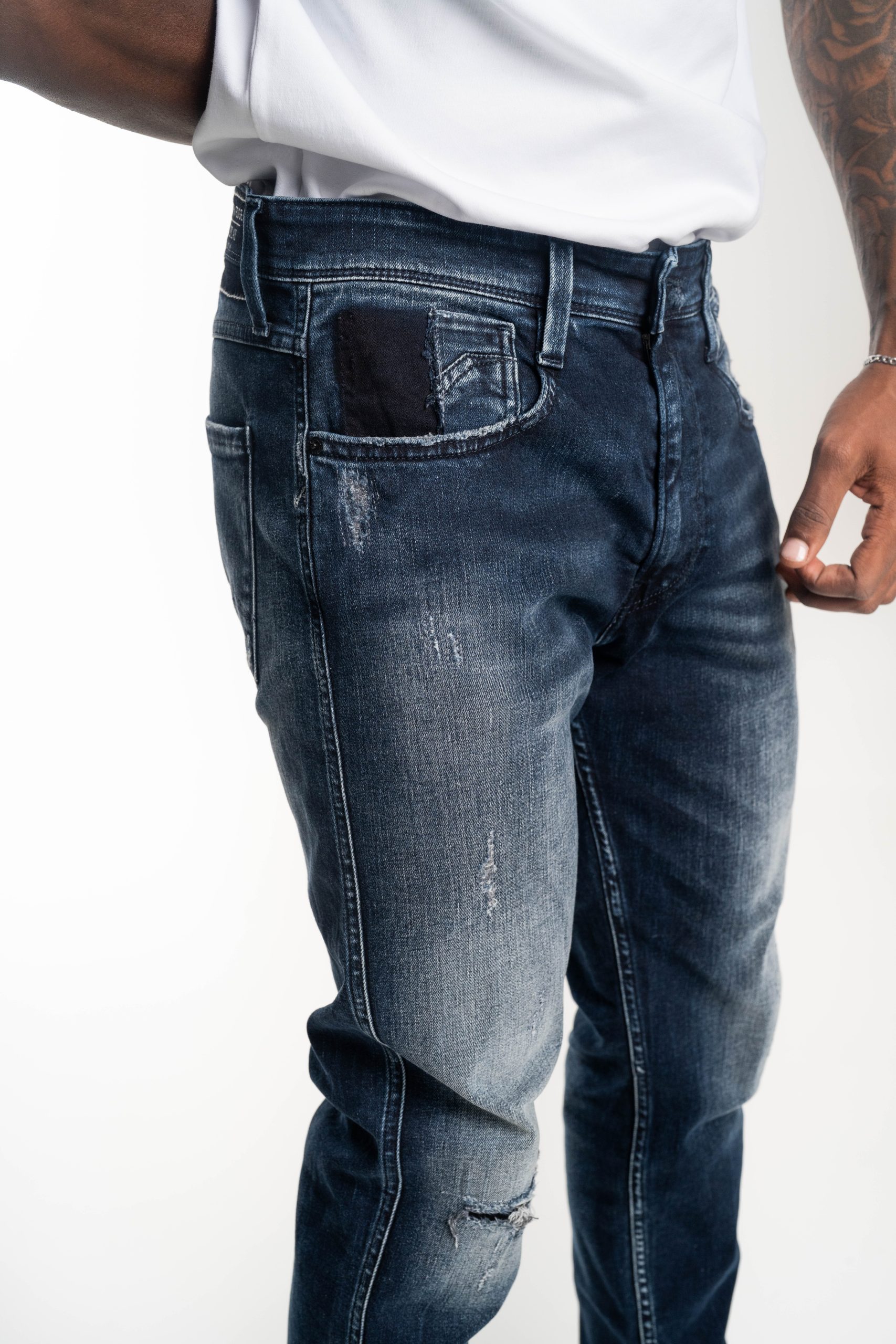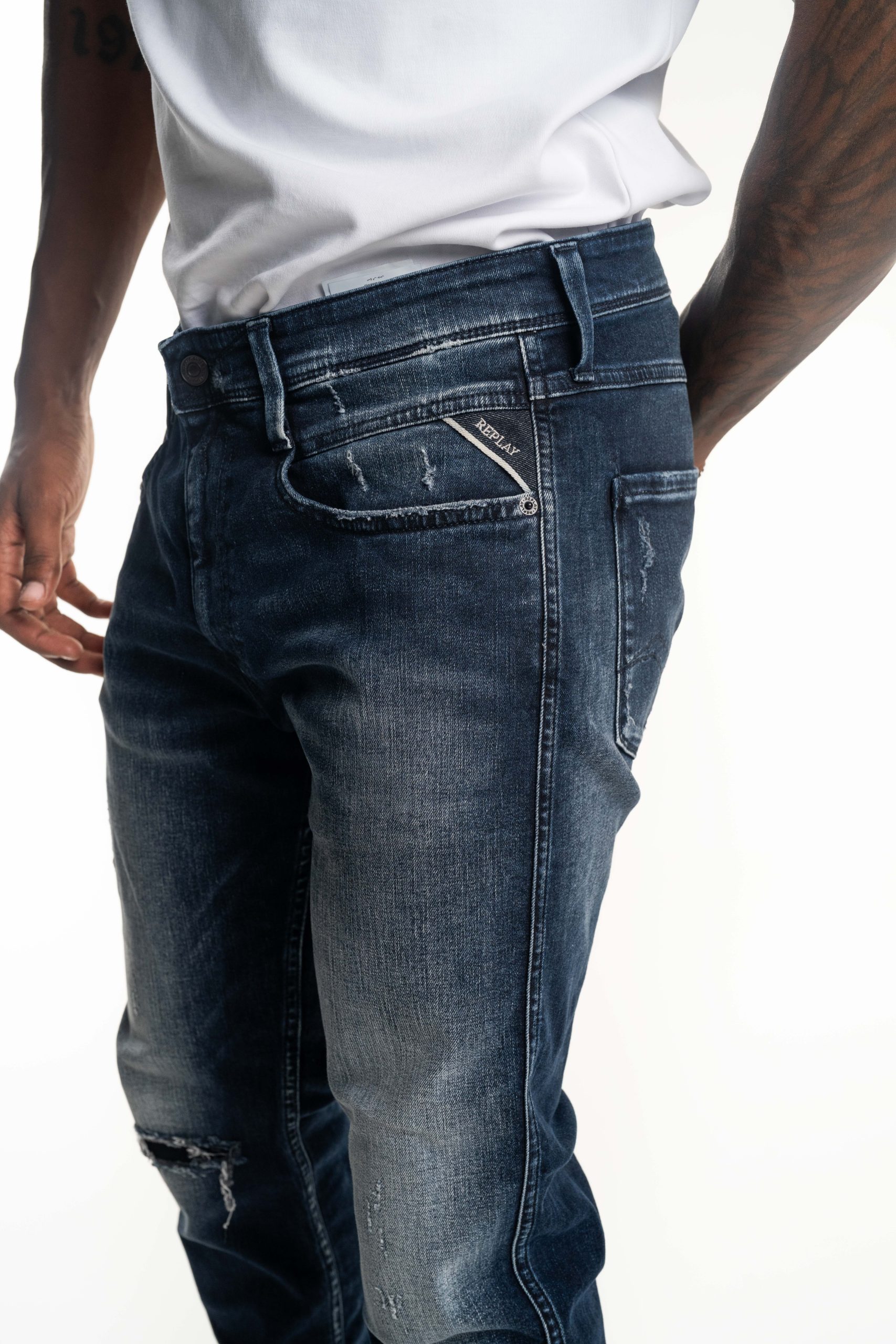 Super Slim-fit jeans with a regular rise and a slim leg that tapers toward the hem. This five-pocket piece comes in 10.5-oz coated power blue/black stretch denim. The coin pocket and back pockets have our iconic gull-wing stitching, while one of the front pockets features a small branded insert. Zip and button fastening. The use of recycled cotton attests to Replay’s commitment to sustainable fashion.