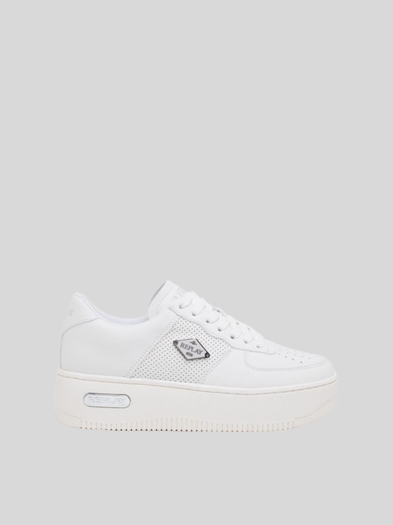 Epic High Total lace-up platform sneakers featuring a PU upper with perforated inserts. This style is finished by the branded tongue and our diamond logo on the side. Chunky thermoplastic rubber sole with logo detail.