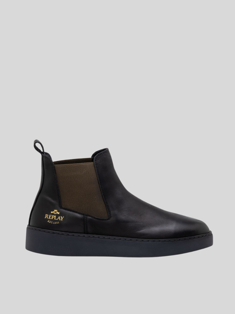 Accordion chevron Chelsea boot with a round toe. Easy to slip on with the Replay Pull-Tab and has elastic gusset. The Chelsea La Boot has a leather Upper and rubber sole.