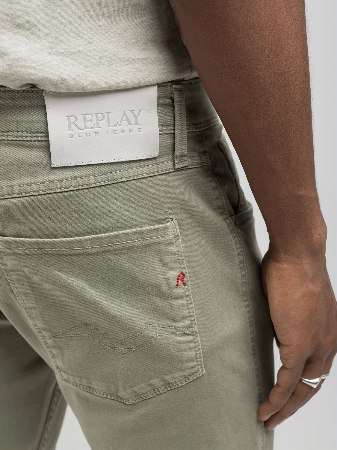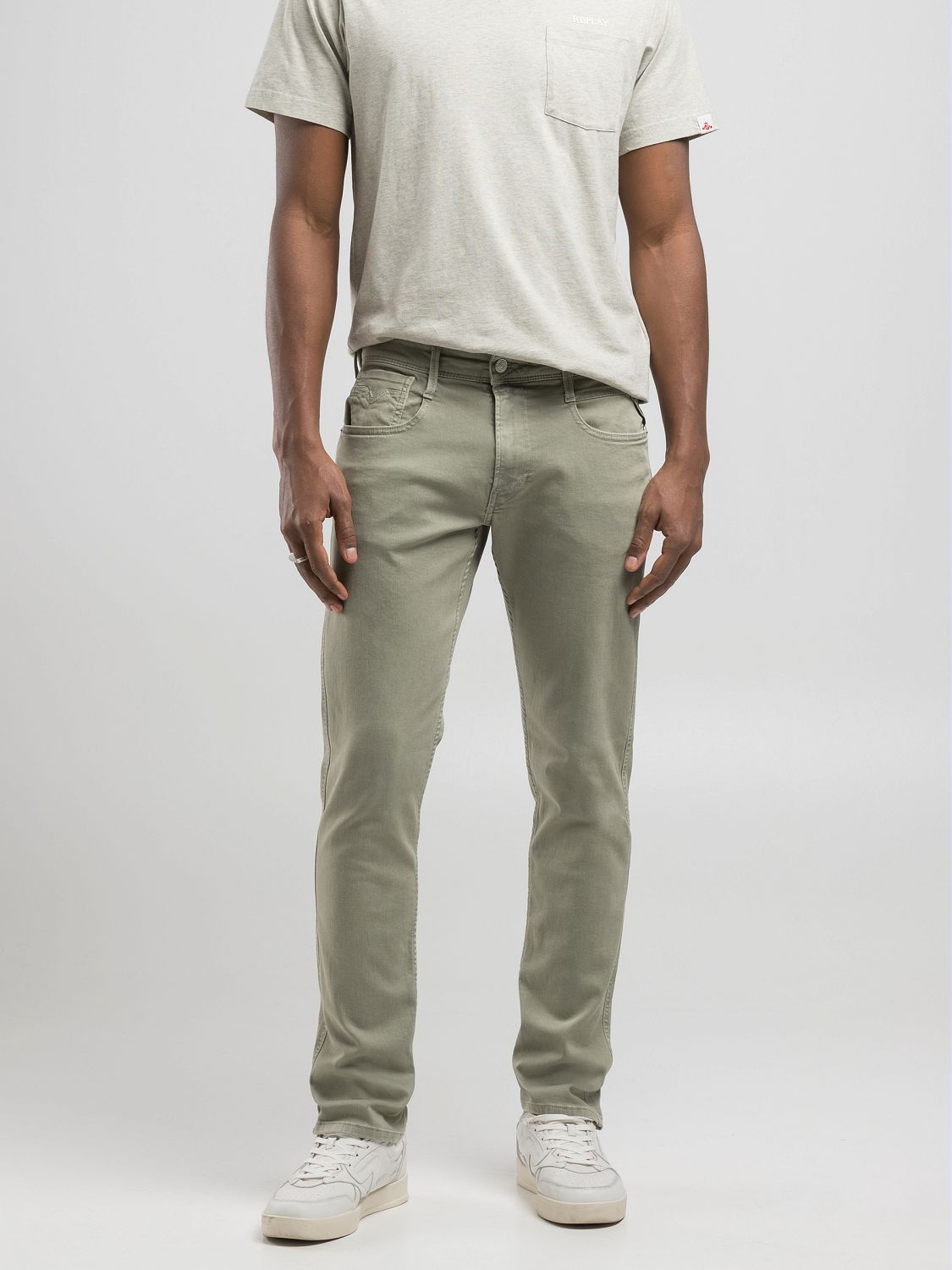 Slim-fit jeans with a regular rise and a slim leg that tapers toward the hem. This design comes in garment-dyed 9.5-oz stretch cotton bull denim and features an old dye and a enzyme stone wash. The coin pocket and back pockets have our iconic gull-wing stitching, one of which bears R embroidery, while one of the front pockets features a small branded insert. Zip and button fastening.