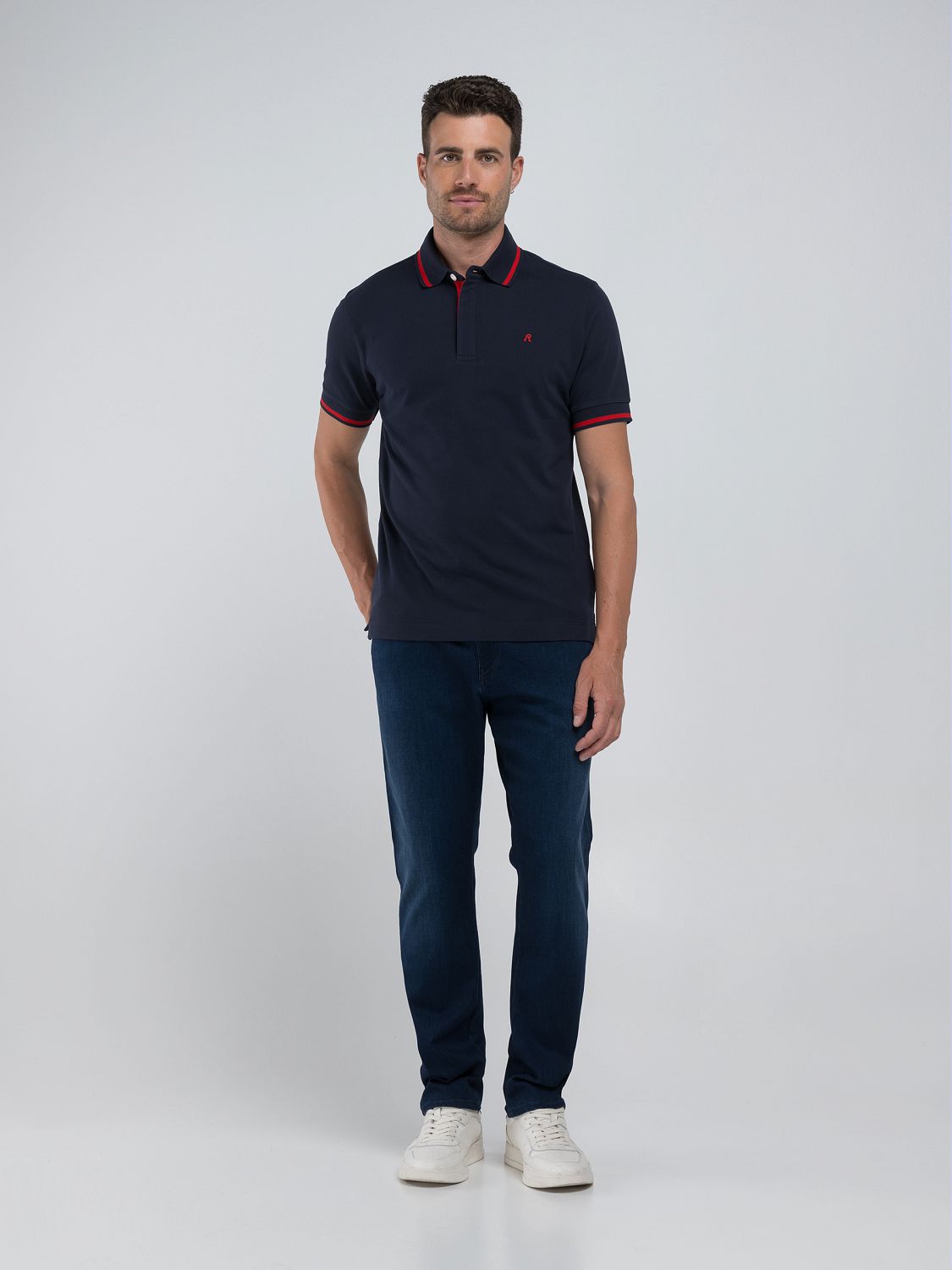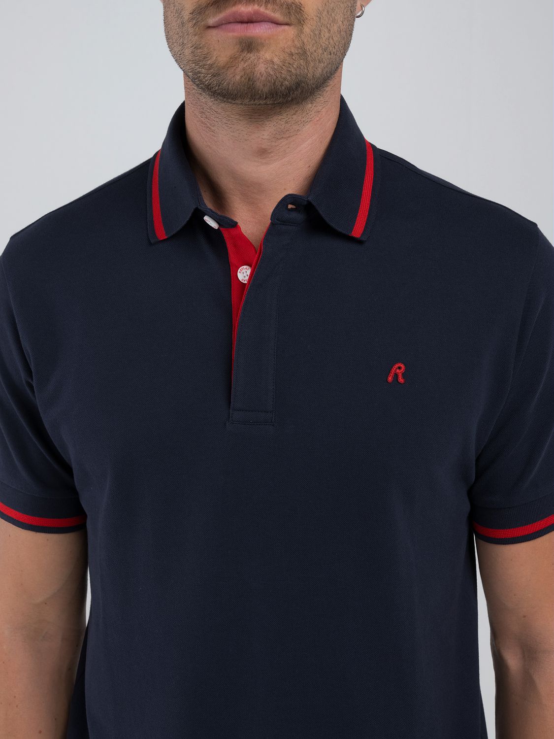 Navy Polo Shirt With Red Detail