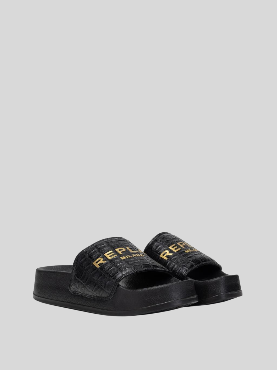 New Lotty Cocco 2 ladies sliders with leather graphics band and Replay Lettering. Rubber sole.