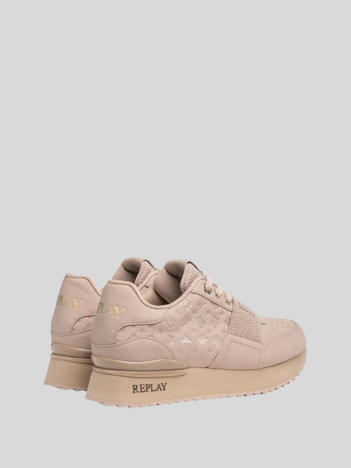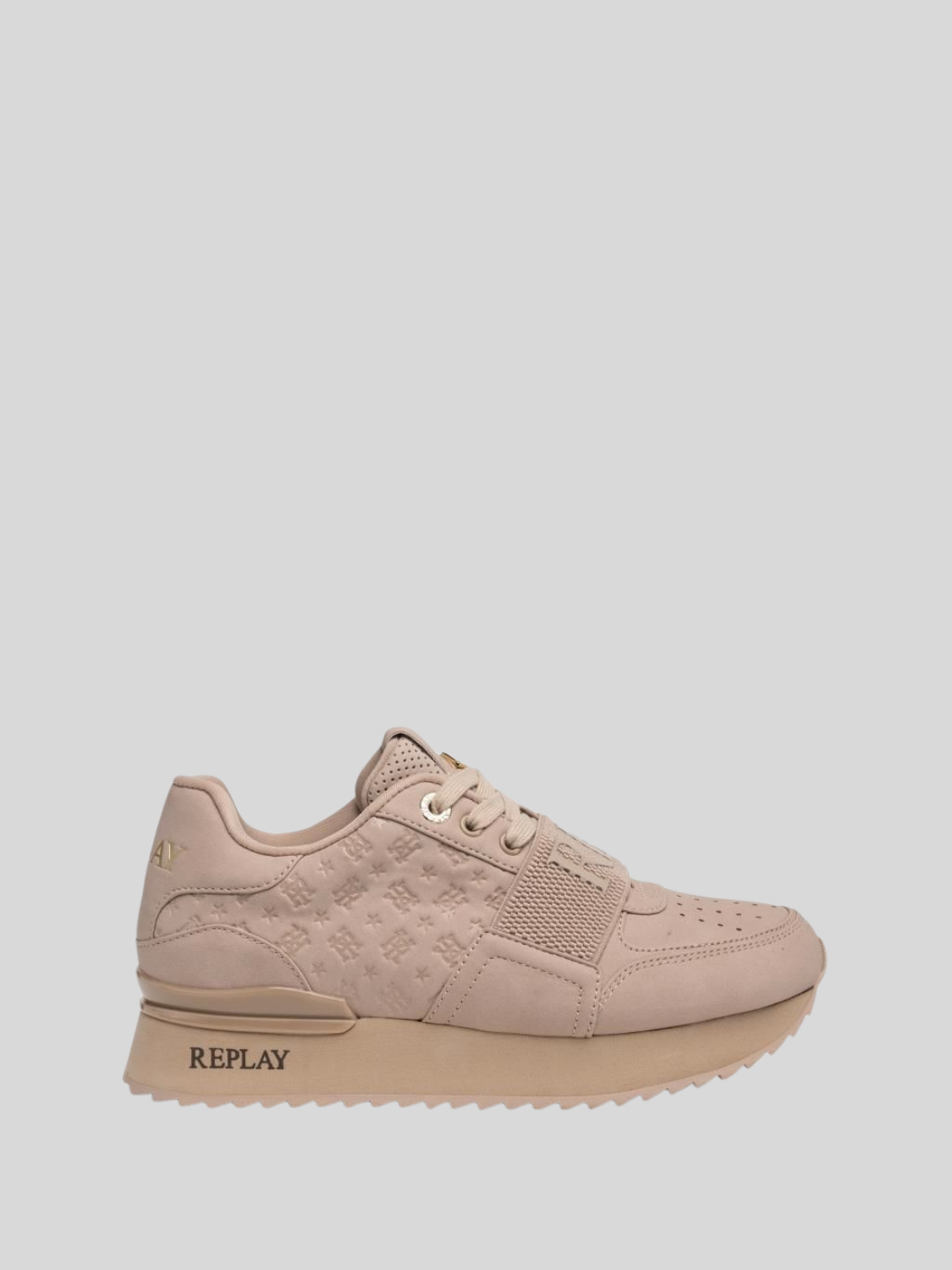 Penny Ry platform sneakers featuring a Lycra upper with PU inserts and the embossed RY monogram on the side. This style is embellished by the all-over RY monogram and custom lettering on the tongue. The heel is finished off by a metallic insert and branded heel counter. The design of these bold yet elegant sneakers is complemented by a notched sole with slim branded band in the centre.