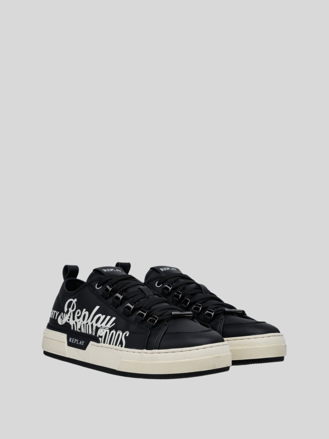 Step into effortless style with the Replay Raily Low double SA Black Sneakers. The overlapping detail combine contemporary design with everyday comfort, making them the perfect addition to your casual wardrobe.