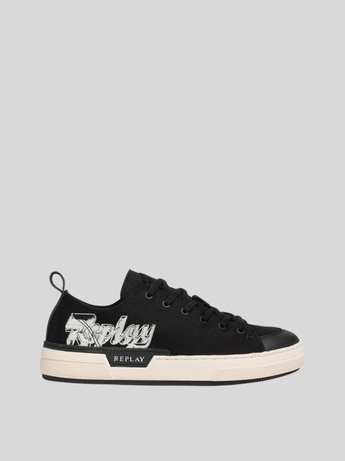 The Replay Rally Graffiti Low Sneakers bring a bold streetwear vibe with their off white canvas base and oversized Replay logo detail. Designed with a sturdy rubber sole and sleek low top silhouette they deliver both comfort and standout style.