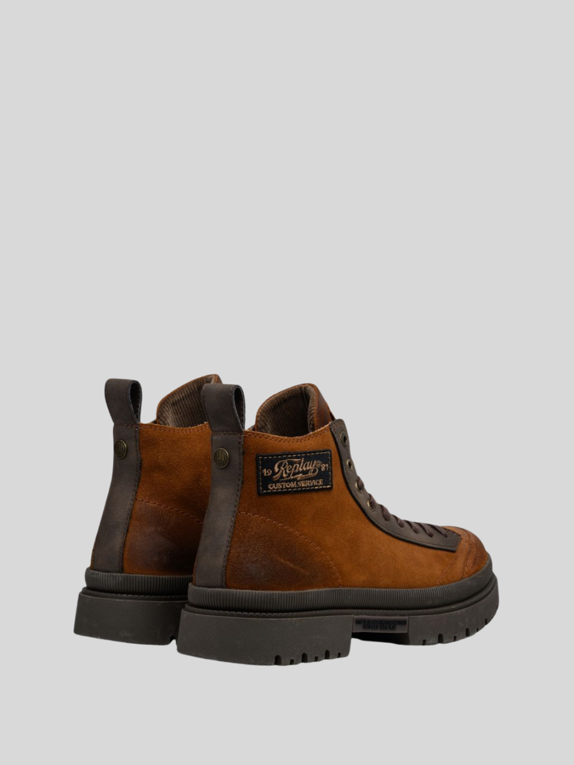 Workwear-inspired Sandtown Mount lace-up ankle boots with water-repellent suede uppers and tone-on-tone leather details. This round-toe style features a lug sole and is embellished with a vintage-inspired side patch and the Replay label on the tongue.