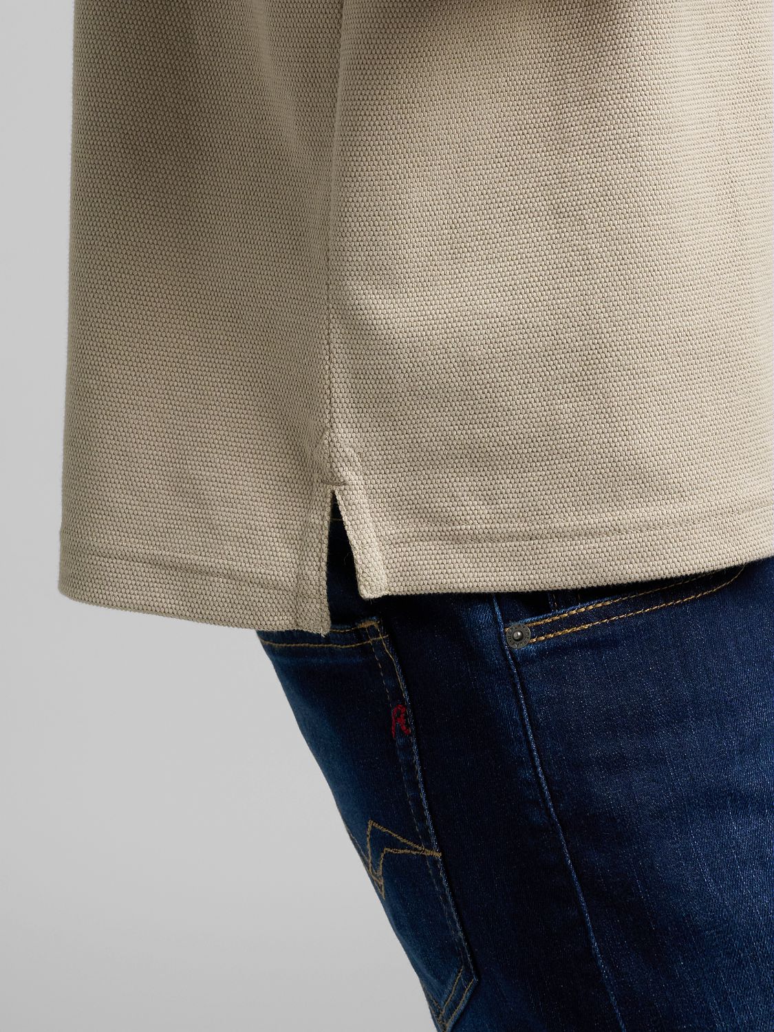 Men’s regular-fit polo-shirt in textured cotton-blend poly piqué fabric. This short-sleeved style features a pointed collar and two-button placket and is embellished with our iconic R embroidery on the chest. The design is distinguished by the collar and sleeve trim finished with contrasting stripes. This men’s polo-shirt also features a hem that is slightly longer on the back and with side slits and the visible seam on the back.