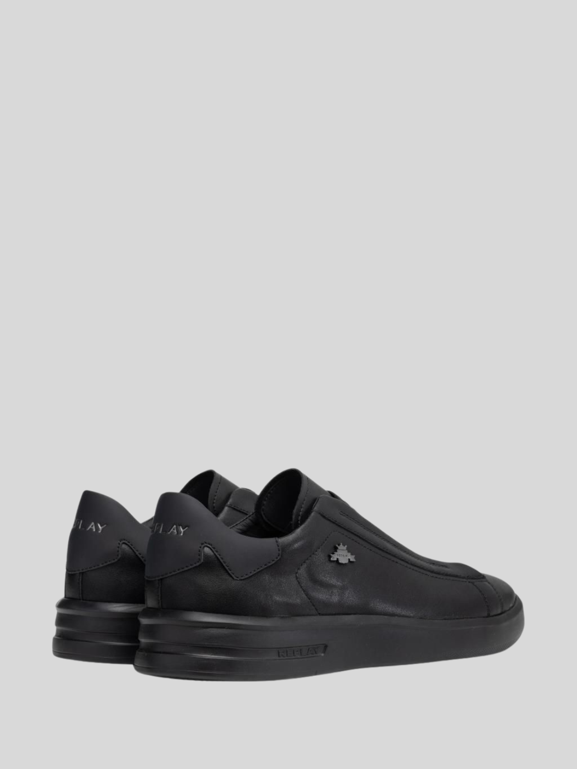 University M Slip slip-on sneakers in soft leather, featuring stretch inserts on the front and the lettering logo on side and tongue. Flat rubber sole with logo detail.